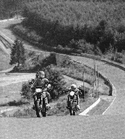 Braun (Z 500): Nach Kallenhardt und Wehrseifen geht's runter nach Breidscheid. 300 Meter tiefer als die Start- und Zielgerade. Die Kurven, kein Problem. Eher schon die Bodenwellen. Aber die 500er liegt wie ein Brett. Nach der steilen Rechtskurve rauf zum Bergwerg, zurückschalten.